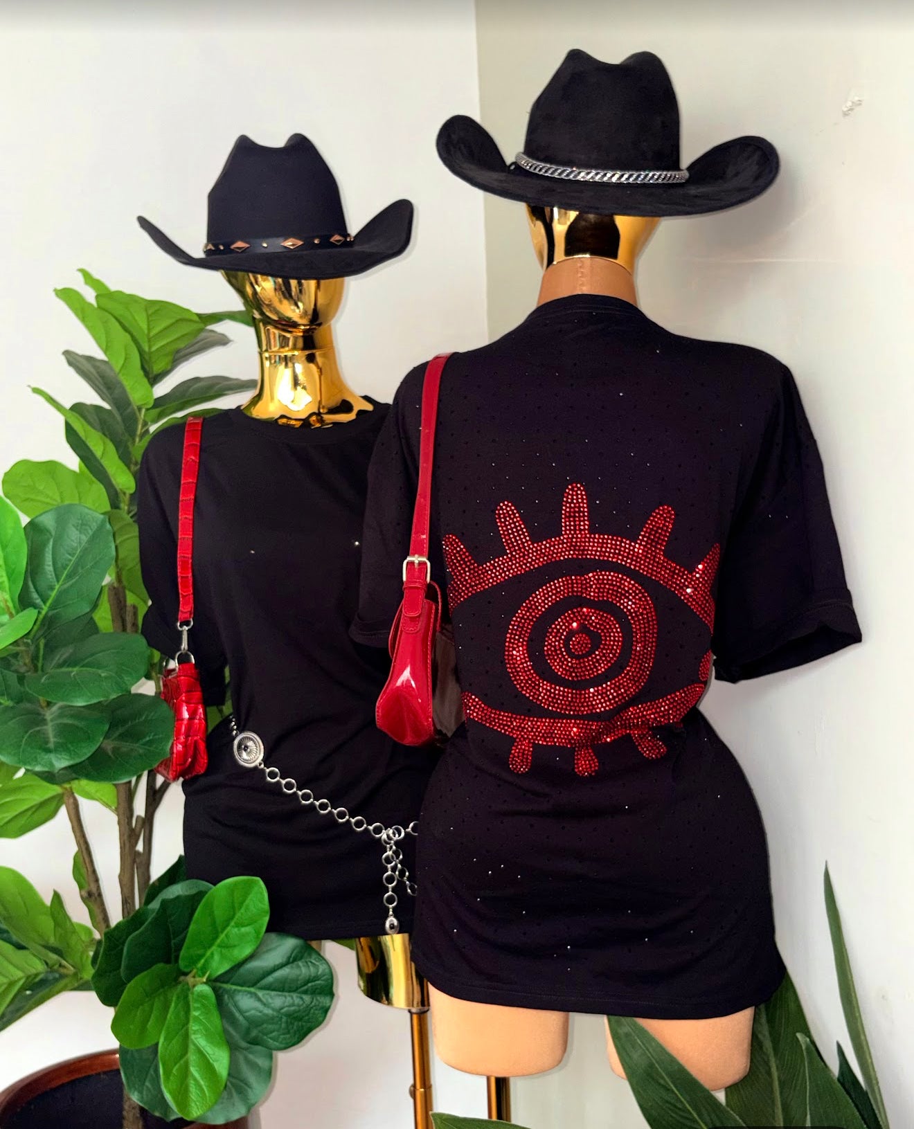 Elevate your style with this eye-catching Rhinestone Fuerza eye overize