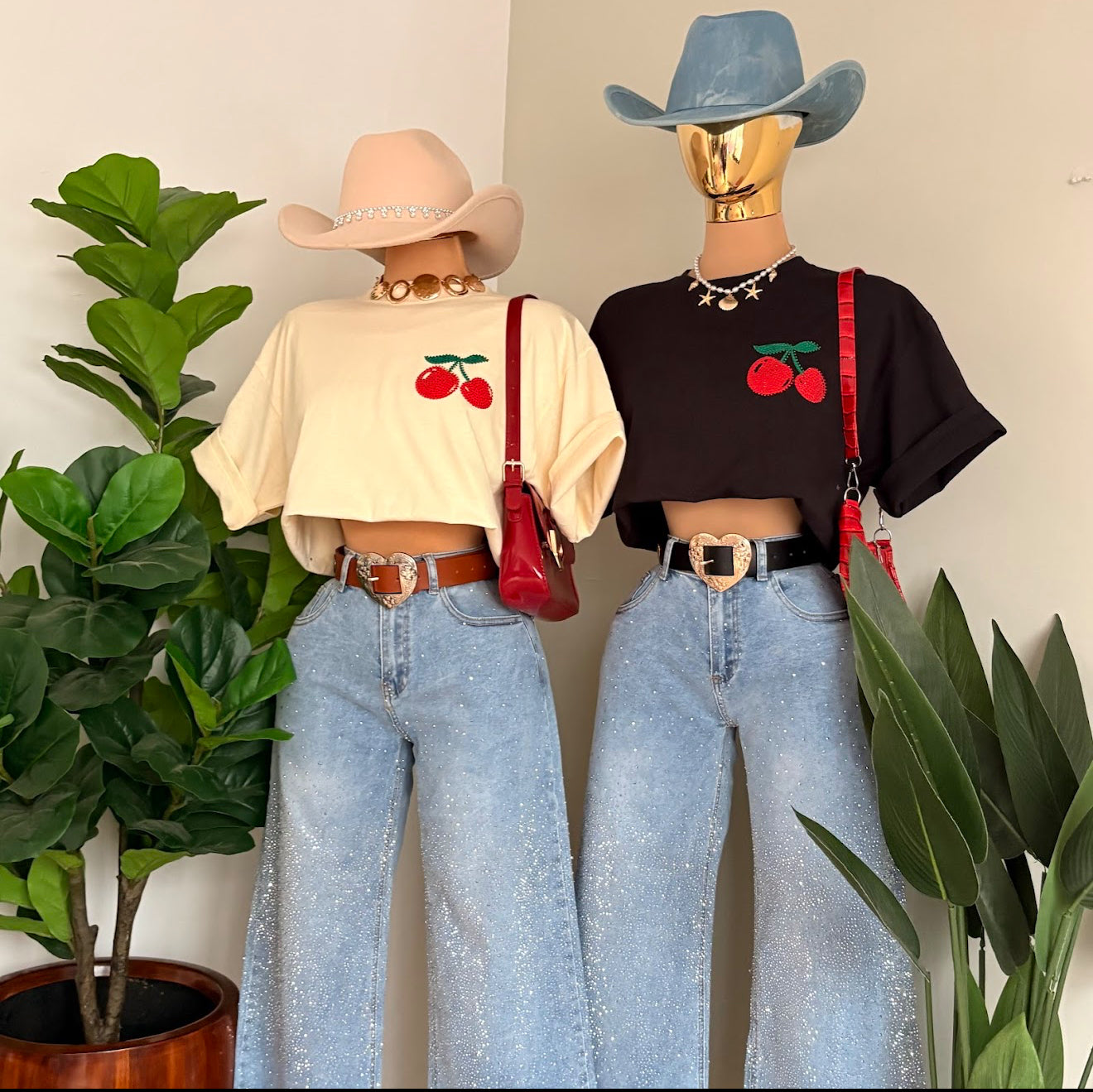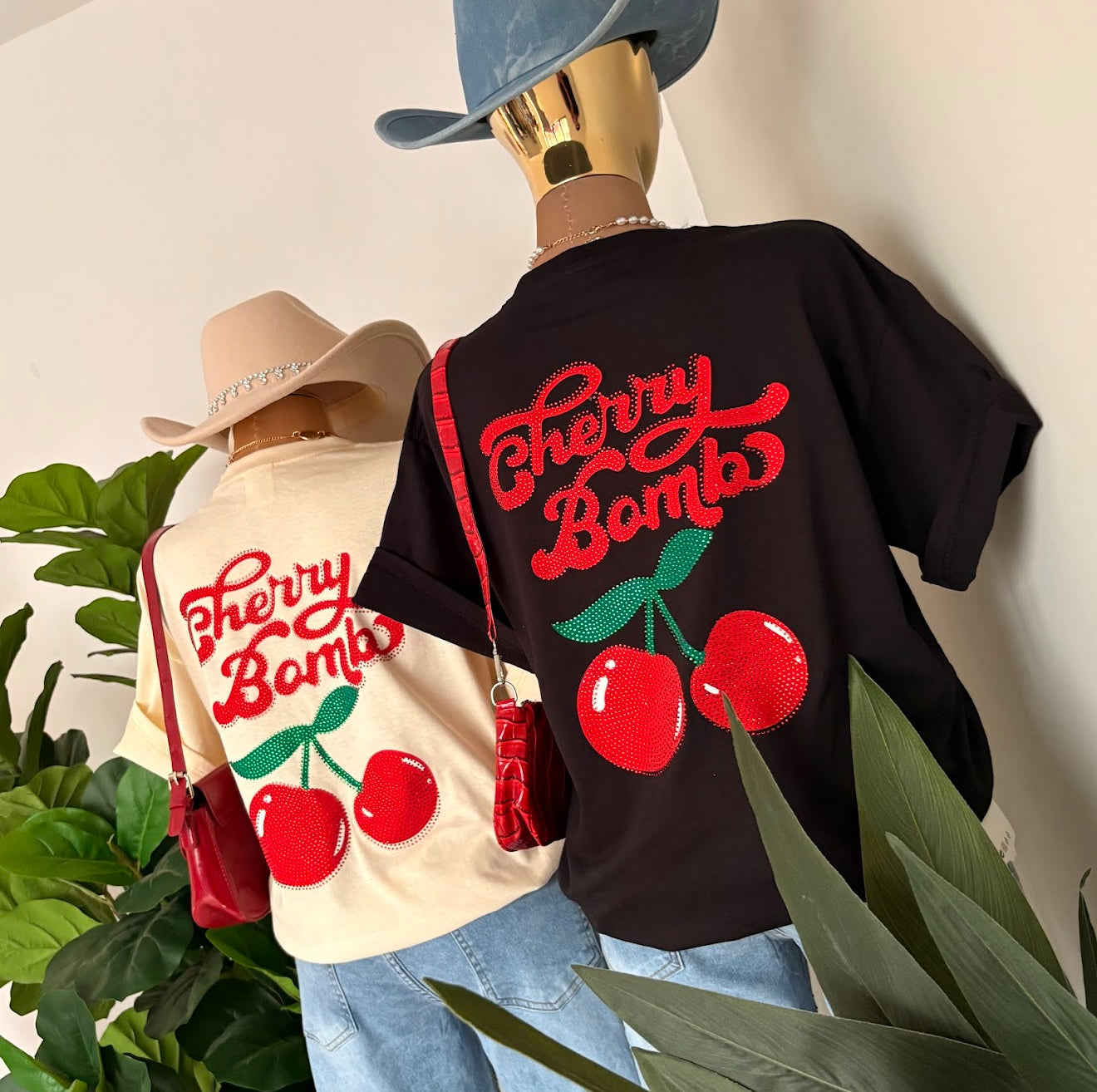 ✨ Stand out with the Rhinestone Cherry Oversize Tshirt! This unique design