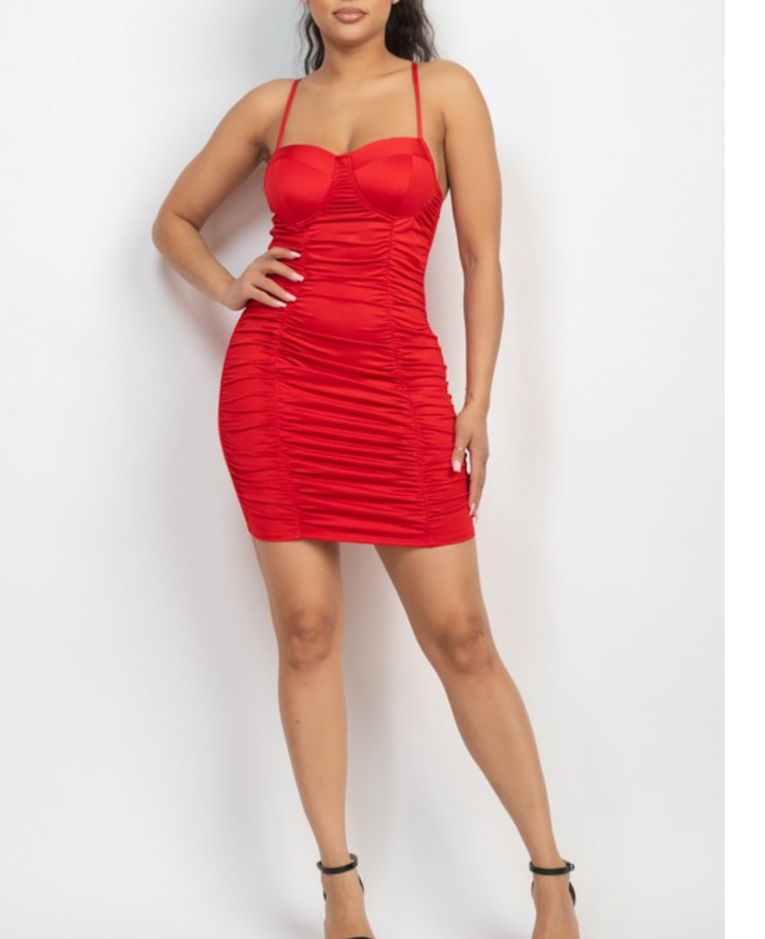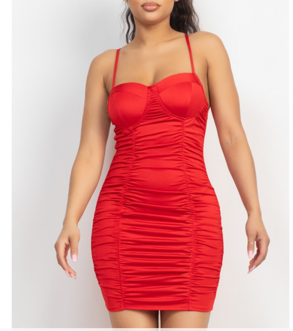 Introducing our Ruched Bodycon Cami Dress, the perfect addition to your wardrobe for any casual occasion.